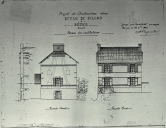 Projet d'installation de la mairie et de l'école des garçons dans l'ancienne gendarmerie, trois plans et élévations au crayon sur calque signé A. Regnault les 17 et 27 avril 1888, échelle 1/100e (A. D. d'Ille-et-Vilaine : Bédée 2 O 23/11 Ecoles.