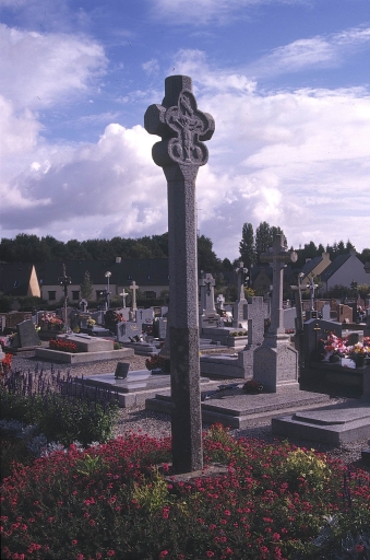 Au centre du cimetière, cette croix du 16e siècle, polylobée sur un haut fût en granite, semble avoir fait l'objet, dans sa partie haute, d'une restauration importante au 20e siècle. Avant son installation à son emplacement actuel, elle s'élevait dans l'ancien cimetière dans le pourtour de l'église.