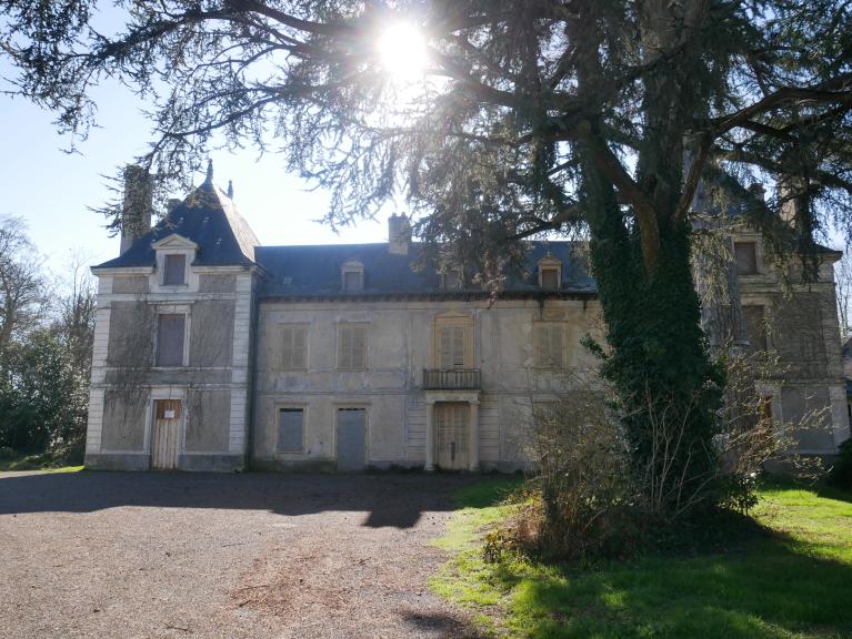 Figuré sur le cadastre de 1814, agrandi d'ailes plus étroites qu'une partie centrale -suivant le cadastre de 1851-, le château porte principalement la marque du milieu du 19e siècle bien qu'il fût remanié par l'addition d'ailes formant des pavillons en ressaut vers 1920 par madame Pinault propriétaire des lieux au 20e siècle -d'après un témoignage et les cartes postales du début de ce siècle.
