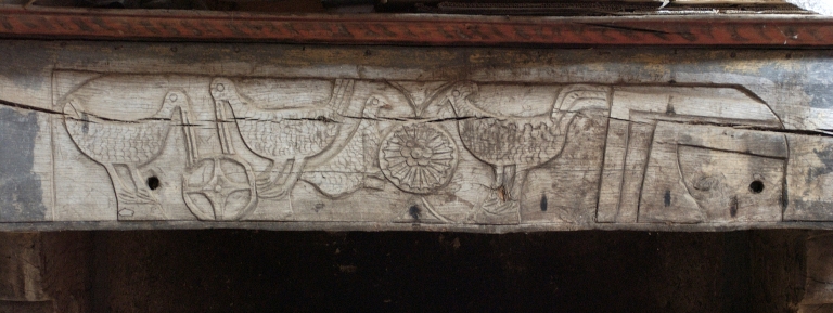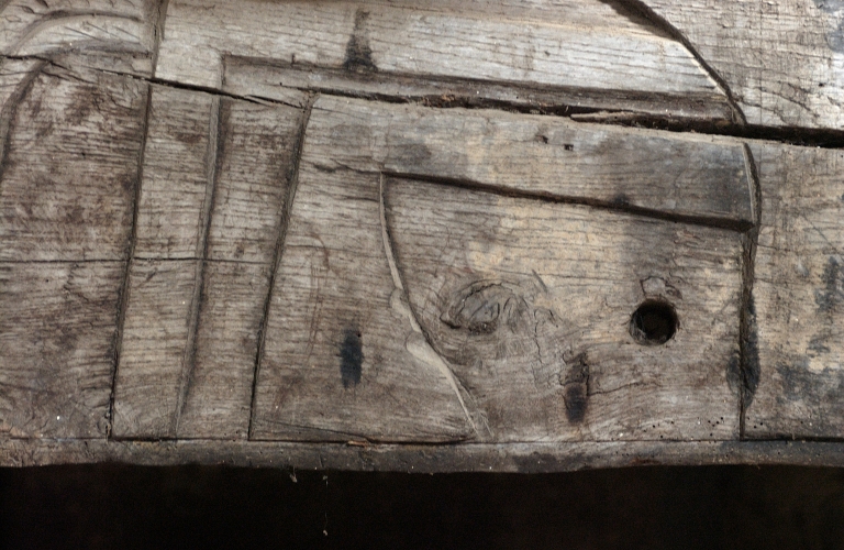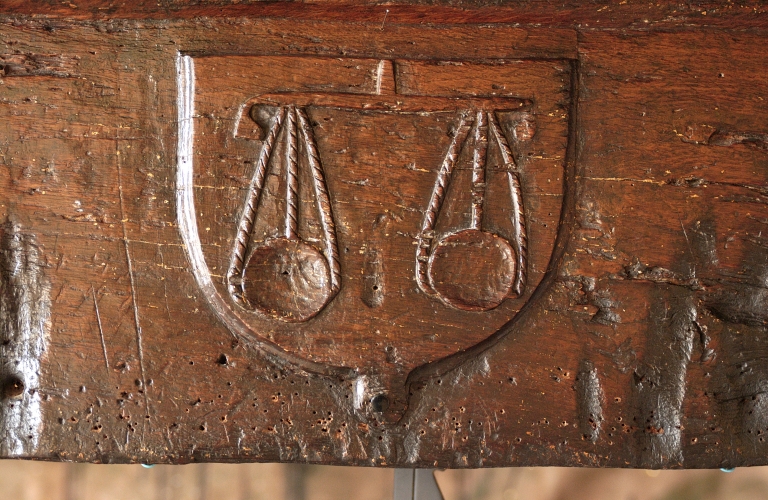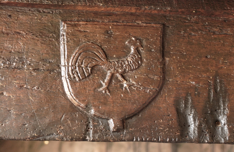 La maison date probablement de la limite du 16e siècle et du 17e siècle, toutefois, au 20e siècle, elle a fait l'objet de grandes modifications notamment en façade. Fait rare, le logis dispose sur le linteau de la cheminée de la salle au rez-de-chaussée, d'un décor composé de trois écus portant chacun un motif : un coq, une balance et une fleur de lys ; la balance fait-elle référence au métier d'un 'peseur', d'un 'changeur' ? Une seconde cheminée est visible à l'étage où le linteau est décoré d'une frise composée d'une représentation de volatiles, de fleurs et d'outils : une équerre et une hache ; la composition générale, mais surtout le style et la facture mal maîtrisée font penser à un travail tardif -au 20e siècle ?- s'inspirant librement du décor réalisé au rez-de-chaussée.