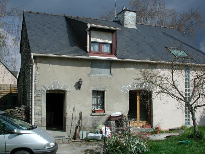 Cette maison à pièce unique est construite en moellon de schiste enduit et couverte d'ardoise.