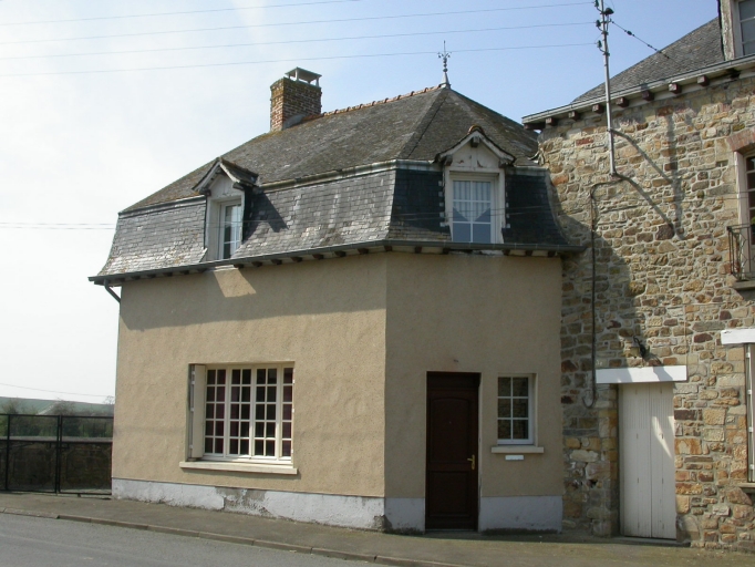 Bâtiment construit en moellon de microdiorite quartzique et enduit. Toiture à la mansard à pans brisés avec épis de faîtage.
