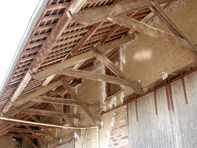 Figurée sur le cadastre de 1850, la ferme a été agrandie dans la 2ème moitié du 19e siècle. Ancien logis-étable en schiste et terre pouvant remonter au 18e siècle. Grange en bauge de très grande dimension postérieure à 1850.