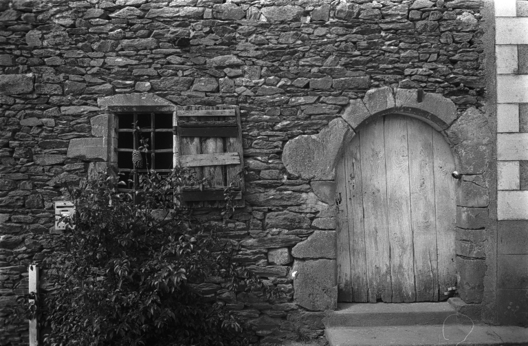 Cette maison est en grès schisteux à joint sec. Son pignon ouest est recouvert d'un enduit. Sa porte en plein cintre et sa fenêtre (anciennement grillée) sont chanfreinées. Les ouvertures sont restées en place.