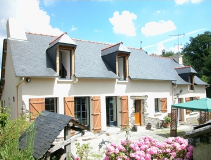 Cette ancienne ferme est en schiste ardoisier et terre. Elle est recouverte d'un enduit.