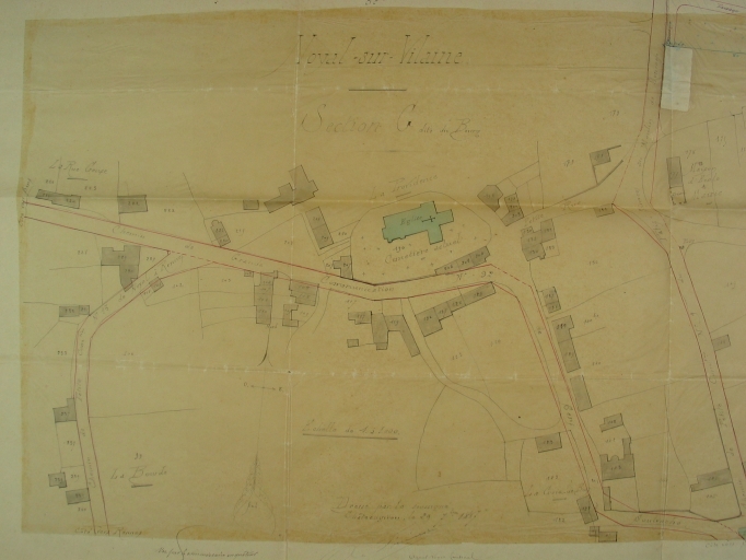 Section G développement du polygone A, 1ère feuille, du n°100 au n°240. Gaboriaud, géomètre du cadastre, [1850], échelle 1/1000 e. (A.D. Ille-et-Vilaine).