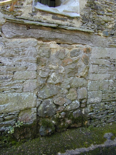 Malgré quelques modifications, ce bâtiment reste très intéressant. En effet, il s'agissait à l'origine d'une ferme à fonctions combinées. Le logis se situe dans la partie ouest, il est bordé à l'extrémité ouest par une grange et par une écurie et une étable dans le bâtiment à l'est. Ces parties semblent être contemporaines les unes des autres. Le logis présente une poutraison très ancienne pouvant remonter au 17e siècle. La façade était à l'origine perçée d'une fenêtre, d'une porte et d'une porte haute permettant d'accéder dans le comble à haut surcroît. Ce logis fut déclassé en dépendance agricole lorsque un nouvel espace d'habitation fut construit. Il en va de même pour l'écurie qui possède une cheminée et une de ses fenêtres est moulurée : il s'agit d'un remploi du 16e siècle (?). Le cadastre napoléonien mentionne la présence d'une construction à l'est de cet alignement. Il s'agit de la porcherie que nous voyons encore aujourd'hui.