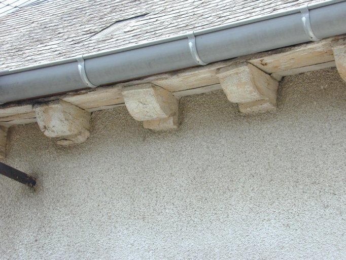 La maison possède une corniche en bois sculptée avec des corbelets très anciens pouvant remonter au 17e siècle. Le toit avec un fort coyau confirme cette datation. Ce bâtiment est bien représenté sur le cadastre de 1850 au lieu-dit La Haute-Rucé, nous le repérons à son avancée en façade antérieure. Il se situait, comme aujourd'hui, à l'extrémité ouest d'un alignement de plusieurs maisons (cinq en 1850). L'enduit posé sur la construction ne nous permet pas de déterminer le matériau d'élévation. Du fait des modifications subies par le bâtiment nous ne sommes pas en mesure de restituer la distribution et les fonctions d'origine de ce dernier.
