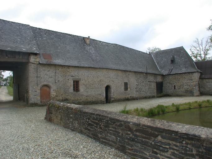 La métairie est située à l'extérieur des douves. Ainsi la basse-cour est bien séparée de la cour seigneuriale. Le logis de la ferme, de parti haut possédait une chambre à l'étage. Ce logis dit à fonctions combinées est accolé de parties agricoles. Son gros oeuvre est en moellons de schiste.