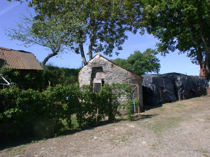 Parti bas. Une lucarne pendante à croupe débordante. Construction traditionnelle en terre sur un solin de schiste. Enduit moderne sur une partie de la façade. Appentis arrière à usage de cellier.