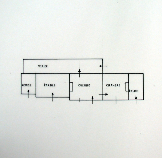 Parti bas. Lucarne pendante. Logis à deux pièces à feu. Etables accolées.