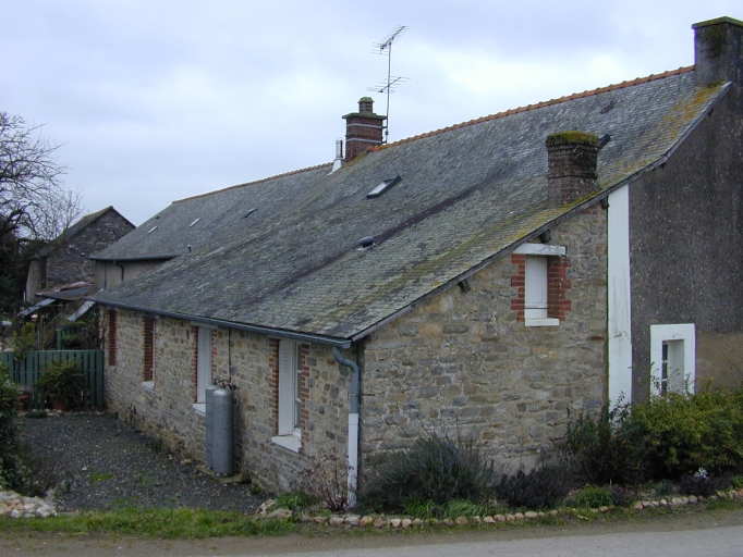 Les murs de cette ferme sont élevés en terre et en moellon de schiste. Les parties en terre sont enduites.Tous les bâtiments sont couverts d'ardoise. Cette ferme est composée de plusieurs bâtiments, un logis accolé d'une dépendance et d'un cellier à l'est, une grange au nord-est et une étable au sud-est.