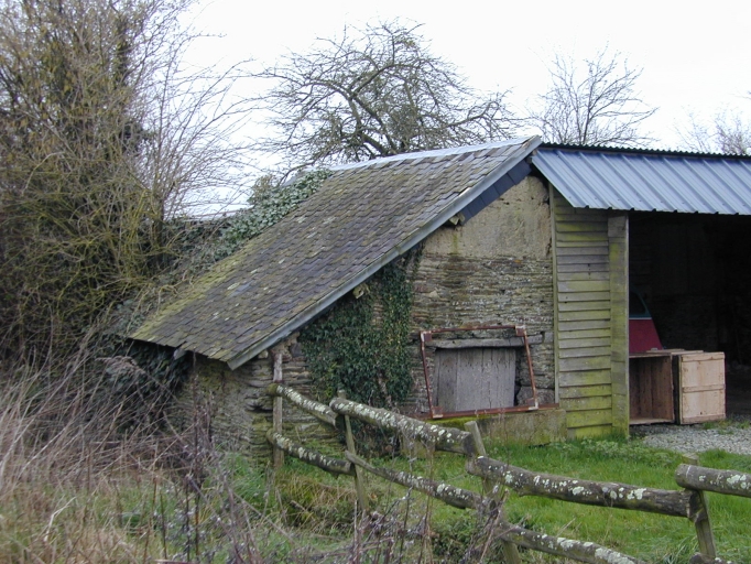 Les murs de ce bâtiment sont élevés en moellon de schiste ardoisier. Le toit est couvert d'ardoise et le comble à surcroît est percé d'une porte haute. Par ailleurs, un appentis postérieur abrite un cellier.