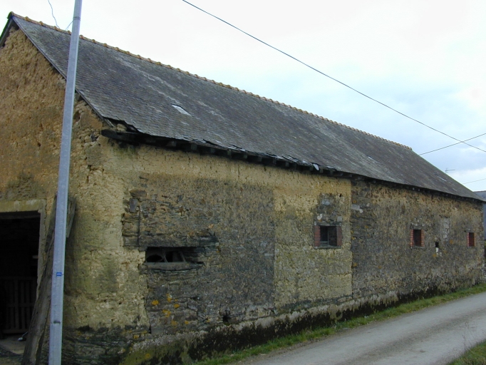 Le cadastre de 1849 représente deux propriétés différentes à cet endroit. De plus, d'après la tradition orale, à la fin du 19e siècle, il s'agissait encore de deux fermes distinctes. Ainsi, le second logis était situé dans l'actuelle étable, ce qui explique la présence de la fenêtre grillée. Cette fenêtre présente un appui et un linteau en granite et des jambages en schiste avec un visage sculpté sur la partie supérieure droite. Le logis actuel a été remanié, il est composé de deux parties différentes non contemporaines mais difficilement datables car très remaniées. La partie la plus ancienne est située au sud alors que la partie nord du logis semble remonter à la seconde moitié du 19e siècle. En outre, d'après la tradition orale, la partie sud du logis était réservée au pressoir autrefois. Un fournil en ruine se trouve à l'ouest des bâtiments. Il existait une écurie au sud, qui fermait la cour de la ferme, celle-ci a disparu en 1976. Enfin, au sud, de l'autre côté de la route, s'élève l'ancienne grange de la ferme transformée en maison d'habitation actuellement. Elle date des années 1890 et est construite en schiste et en pierre provenant de la carrière de Crapeaux à la Bouexière d'après la tradition orale.