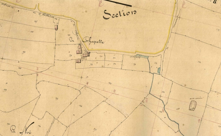 Servon sur Vilaine. Section B2 de la Croix. En 2 feuilles, 2me feuille, par M. Gaboriaud, Géomètre de 1ère classe, terminé le 1er octobre 1849, échelle 1/2000 e. (A.D. Ille-et-Vilaine).