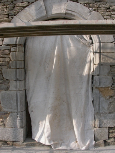 Ce bâtiment construit en moellon de schiste est couvert d'ardoise. Le toit présente une forte pente ainsi qu'un important coyau. Il existe un appentis latéral ainsi que des parties accolées au bâtiment de part et d'autre. Face à ce bâtiment, se trouve une remise et les vestiges d'un mur en moellon de schiste.