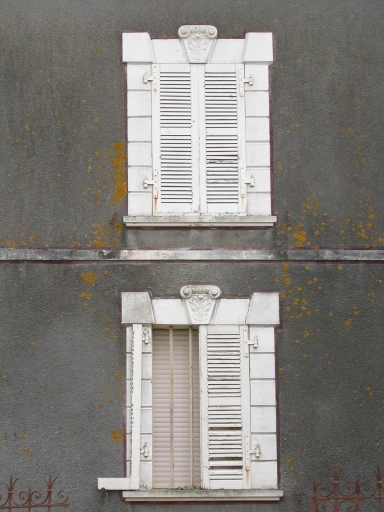 Maison construite en schiste et enduite. Un bandeau peint décore l'enduit. Les entourages d'ouvertures en granite ont un décor de volutes et de feuilles sur le linteau. La maison est entourée d'un petit jardin clôturé par une grille sur un muret de brique. Elle possède une cave, quelques marches encadrées d'une balustre en fer forgé et un perron mènent à la porte d'entrée. Une porte haute pendante permet l'accès au comble à surcroît.
