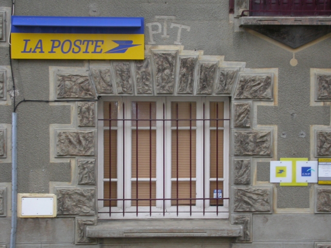Ce bâtiment des PTT est enduit mais ses entourages d'ouvertures et ses chaînages d'angle sont en béton moulé.