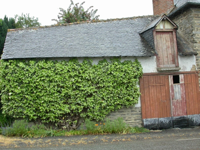 Le logis est élevé en moellon de schiste et a des ouvertures en brique. La toiture à croupe est décorée de deux épis de faîtage. Une dépendance construite en terre sur un solin de schiste est accolée sur au pignon sud.