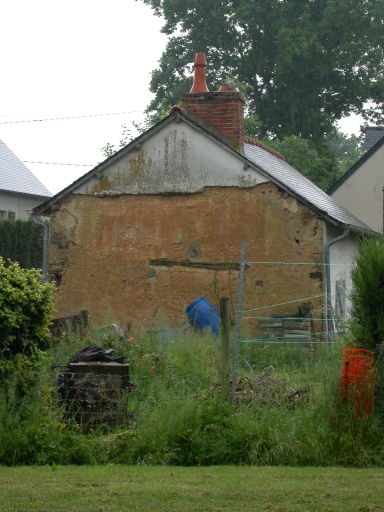 Ce logis est construit en terre sur un solin en moellon de schiste. Sa façade est enduite.