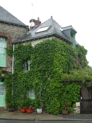 Cet immeuble qui abrite aujourd'hui dans une de ses parties l'Auberge Saint-Armel fut construit à la fin du 19e siècle ou au début du 20e siècle. La porte de l'auberge fut agrandie en vitrine et une autre fut transformée en fenêtre. A l'origine, il y avait donc quatre portes d'entrée menant chacune à un logis composé d'une salle au rez-de-chaussée et d'un étage. Un bâtiment accolé à l'est et en retrait par rapport à la rue abrite lui aussi un logis. Au-dessus d'une des portes se trouve une plaque en pierre qui devait porter une inscription aujourd'hui effacée. Une autre plaque, celle-ci en fonte, se trouve au-dessus d'une autre porte. Elle représente un couple en train de danser et provient sans doute d'une plaque de cheminée.