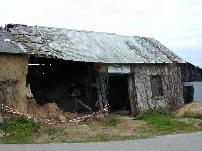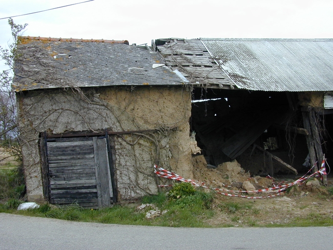 Cette ancienne ferme se compose d'un logis au bord de la route et d'une dépendance, en terre, de l'autre côté du chemin.