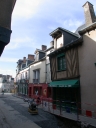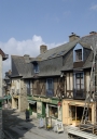 54 édifices documentés Cette ancienne rue située au Sud du château doit son appellation à la proximité de l'église castrale dédiée à sainte Madeleine. C´est toujours l'artère principale et commerçante de la ville. 54 maisons y ont été documentées dont 41 datent des 16e ou 17e siècles. Ces maisons pour la plupart en pan de bois possèdent une boutique en rez-de-chaussée. L´insigne des marchands de toile s´y retrouve aux numéros 25, 28 et 35 de la rue. Très peu de destructions sont attestées dans cette partie de la ville, hormis la maison sise au 23 rue de la Madeleine qui présentait une façade à large pignon sur rue. L´encorbellement très prononcé de l´étage indiquait une construction médiévale pouvant remonter au 15e siècle ou au 16e siècle. Les constructions en pan de bois sont de structures variées, à pignon sur rue, à mur gouttereau sur rue, s´inscrivant pour la plupart sur un parcellaire lanièré de type médiéval. Ces habitations font parties du corpus ancien des maisons en pan de bois de Bretagne. Celle située au 35 de la rue date de la fin du 15e siècle ou du début du 16e siècle. La présence de l'hermine et de la fleur de lys sur un même blason indique une datation probable entre 1491 (date du mariage d'Anne de Bretagne avec Charles VIII) et 1514 (date du décès d' Anne de Bretagne).