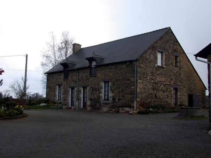 Logis de parti bas. Anciennement à deux pièces habitables en rez-de-chaussée avec appentis arrière. Lucarnes pendantes à croupe débordante. Logis en moellons de schiste et de grès formant des bandes alternées de couleur. Les étables sont en terre.