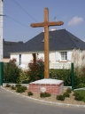 Cette croix en bois possède un socle en brique. Le Christ est en fonte.