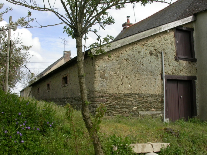 Les murs du logis de cette ferme sont enduits et couverts d'ardoise. Le cellier situé en appentis postérieur est en terre sur un solin de schiste. L'étable et la porcherie situées face au logis sont également construites en bauge.