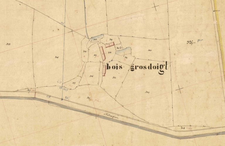 A la fin du 15e siècle et au début du 16e siècle, le Boisgrosdoigt appartenait à la famille Grosdoigt. Au 18e siècle, il était devenu la possession de la famille de Guerry. Il fut vendu comme bien national en 1795 à Jean-Pierre Parcheminier, juge à Rennes. En 1849, lors de la réalisation du cadastre, il existait trois bâtiments principaux et un four à cet endroit. Aujourd'hui, il existe un logis au nord ainsi que des dépendances au sud et à l'est. Le bâtiment représenté à l'ouest sur le cadastre a disparu. Le logis actuel porte une date sur sa souche de cheminée : 1801 ou bien 1891. Il est cependant plus vraisemblable qu'il s'agisse de 1801 car le décor des corbelets en bois de la corniche, le coyau... correspondent plutôt à une construction de 1801 que de 1891. Les pierres employées pour l'encadrement des baies sont vraisemblablement des remplois de l'ancien manoir. Le bâtiment en moellon de schiste situé au sud de la cour et possédant des contreforts est une construction ancienne qui a été aménagée en grange à la fin du 19e ou bien au début du 20e siècle. Les bâtiments de l'est datent de la seconde moitié du 19e siècle, en effet, ils n'existaient pas lors de la réalisation du cadastre de 1849.