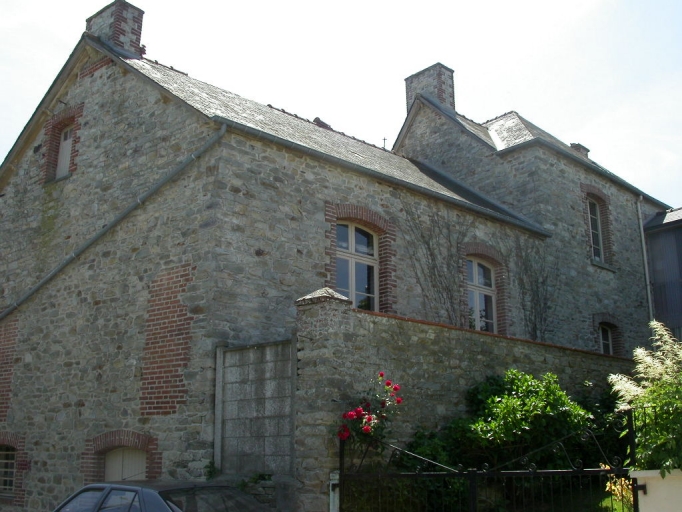 Ce bâtiment remonte, selon toute vraisemblance, au début du 20e siècle. Il en présente les caractéristiques : toit à demi croupe, encadrements de baies en brique... Il possède un plan en L, en effet, la partie ouest est en saillie par rapport à la partie est. La partie ouest abritait vraisemblablement les salles de classe alors que la partie est était probablement réservée au logement de l'instituteur. Une maison décole de filles avait été construite par l'architecte Marchand vers 1870, il pourrait s'agir du bâtiment dans lequel se trouve la mairie actuelle. De plus, ce sont les Filles de Jésus de Kermaria qui dirigeait cette école de filles.