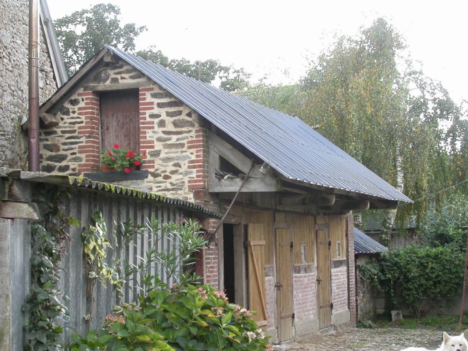 Maçonnerie en moellon de microdiorite quartzique et de schiste. Encadrements en granite, porte haute pendante en brique.