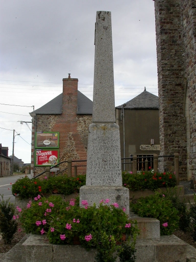 Ce monument aux morts a été érigé en 1920 par Guenevoux, entrepreneur à la Guerche-de-Bretagne pour 2340 francs. Il a été élevé en souvenir des morts de la Guerre de 1914-1918 ; les noms des soldats décédés pendant la Seconde Guerre Mondiale y ont été ajoutés.