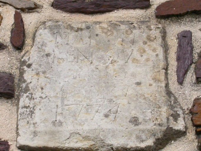 Cette construction date de 1774, comme l'indique le cartouche sur la façade. Même si les ouvertures du rez-de-chaussée ont été remaniées, certains éléments architecturaux sont représentatifs de cette époque. En effet, le coyau, la forte pente de toit, l'arc de décharge situé au dessus de la fenêtre du pignon ouest, les corbelets en bois sculptés (même s'ils ont été repris), ainsi que la présence des cheminées en partie centrale sont des caractéristiques du 18e siècle. Cette maison était probablement composée de deux pièces au rez-de-chaussée, possédant des cheminées adossées.