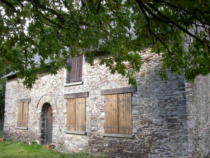Plusieurs bâtiments distincts composent cette ferme. Ils sont élevés en moellon de schiste et couverts d'ardoise. Le logis se trouve au nord, il possède un appentis postérieur. Sa façade présente encore une porte en plein cintre surmontée d'un larmier. Au sud du logis, s'élève les dépendances : des porcheries au sud-est, une étable/écurie au sud-ouest.