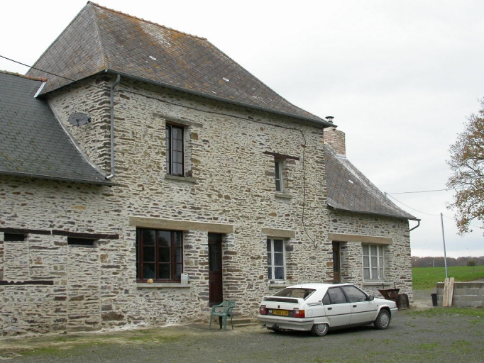 Les bâtiments constitutifs de la ferme sont construits en moellon de schiste ; ils sont couverts d'ardoise et de matériau synthétique. Le logis est situé au nord, il s'élève sur trois niveaux (rez-de-chaussée, étage, comble) contrairement au reste des bâtiments. Il est couvert d'un toit à croupes possédant un léger coyau. Au sud, se développent les dépendances. Elles sont construites dans l'alignement du logis, cependant, elles possèdent simplement un rez-de-chaussée et un comble à surcroît. Il s'agit d'étables, d'écuries et d'une grange.