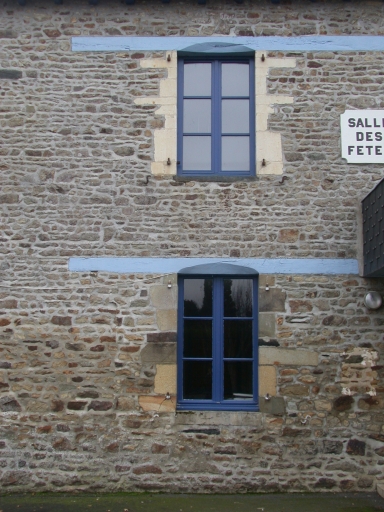Elévation à deux travées. Les encadrements des baies de l'étage sont en pierre calcaire, tuffeau de Loire. Les ouvertures de chaque niveau sont reliés par un unique linteau légèrement délardé aux embrasures des ouvertures.
