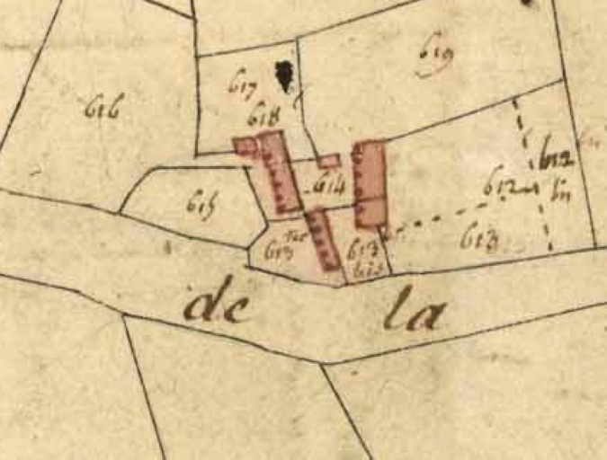 Le cadastre napoléonien mentionne la présence d'un alignement de deux logis à cet endroit. Il pourrait s'agir du bâtiment actuel, car il semblerait dater du 17e siècle. Cette construction était peut-être divisée en deux logis à pièce unique, ou bien la partie est abritait une dépendance. Les modifications subies par la construction ne nous permettent pas de l'affirmer.