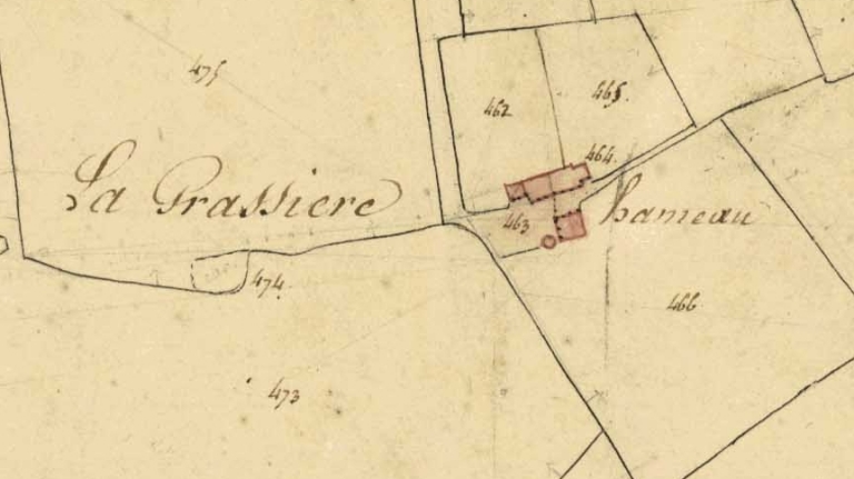 Cet alignement est bien mentionné sur le cadastre de 1827, au lieu-dit La Grassière Hameau. A cette époque, il y a avait un alignement de deux fermes et une dépendance et un four au sud. D'après la tradition orale, l'alignement avait été divisé en sept logis. L'extrémité est de l'alignement était occupé par un logis à deux pièces à feu juxtaposées (chambre et cuisine) avec un cellier en appentis postérieur. Au centre se trouvaient deux logis à une pièce (les cheminées sont encore existantes). Un de ces logis a été déclassé en dépendance agricole (le cellier et l'étable était alors séparés par une cloison en torchis). Cette ferme apparaît dans les actes de notaire de 1884. Dans l'extrémité ouest, s'élève un autre logis à une pièce. Il semble plus ancien et pourrait dater du 17e siècle.