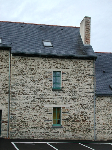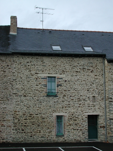 L'immeuble est construit en moellon de schiste et son toit à longs pans est couvert d'ardoise et est flanqué d'une souche de cheminée. La façade est percée de quatre travées de fenêtres. Les encadrements sont en grès et en schiste et les linteaux sont en bois.