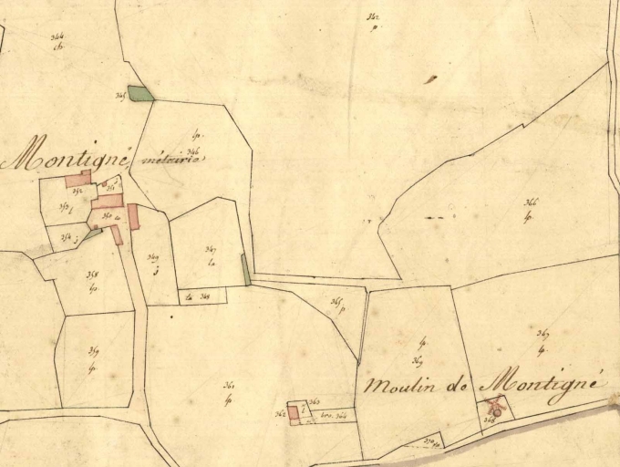 A noter que le moulin à vent du Bourg Saint-Pair cité par Marteville dans la réédition de Ogée en 1845 n'est pas figuré sur le cadastre de 1827.