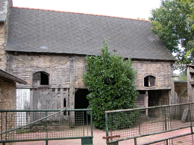 Logis à plan en équerre avec une tour d'escalier dans l'angle ; étable à chevaux et remise en pans de bois.