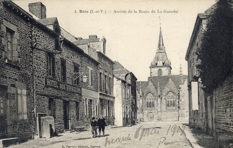 4. Bais (I-et-V). Arrivée de la Route de la Guerche. Carte postale, Rennes : A. Pacory, édit., [s.d.]. (Coll. part. Marcel Gallier).
