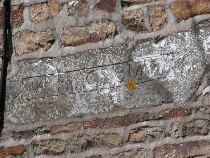 La grande demeure recomposée, notamment en façade, dans la deuxième moitié du 19e siècle porte en remploi les dates probables de sa construction initiale en 1612 [date en chiffres arabes] et MDCXIII [1613 en chiffres romains] assorties de deux écus, l'un au monogramme du Christ, l'autre portant les initiales MB ; une pierre en remploi porte l'expression latine PAX HVIC DOMVI [Paix à cette maison]. Son mur nord laisse apparaître une belle porte moulurée à arc en accolade dont le profil est conforme aux dates exposées. S'agissait-il de la maison d'un moine comme le signale la tradition locale rappelant que l'ancienne chapelle Saint-Pierre toute proche dépendait de l'abbaye Saint-Melaine de Rennes ?