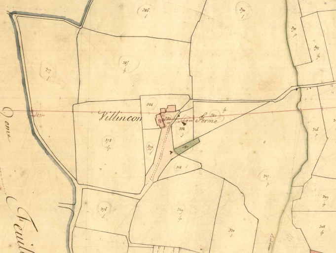 La ferme reconstruite au 19e siècle, puis autour de 1900 avec notamment la monumentale grange et remise agricole en terre, s'élève t'elle sur le site de l'ancien manoir de 'Villescoz' mentionné par Paul Banéat ? La forme du vaste parcellaire permet de l'imaginer mais nullement les éléments architecturaux qui ne laissent pas apparaître d'éléments significatifs.