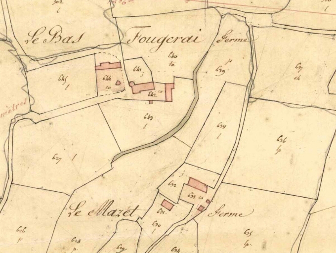 Plan géométrique parcellaire de la commune de Bais, section E2 dite de la Haye. Levée par Jamet et Chalette géomètres, [1827], échelle 1/2500e. (A.D. Ille-et-Vilaine : 3 P 5247).