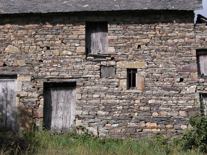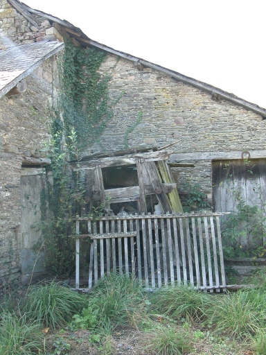 La ferme désaffectée est caractéristique des logis combinant, aux 17e ou 18e siècles notamment, l'habitation et les pièces à usage agricole dans le même volume suivant un plan allongé. La mise en oeuvre de la maçonnerie en appareil mixte schiste et granulite est soignée, toutefois certaines pierres en remploi ou l'usage des linteaux en bois suggèrent une reconstruction probable de l'édifice.