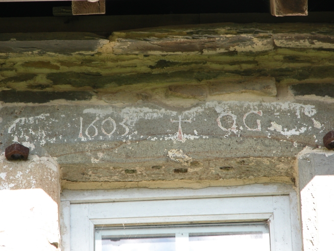 L'ancienne ferme juxtapose deux logis : le plus grand combinant fonction d'habitation et agricoles sous le même toit est daté 1573, le plus petit à l'ouest qui devait être à seul usage d'habitation est daté 1605 avec les initiales O(?)G.