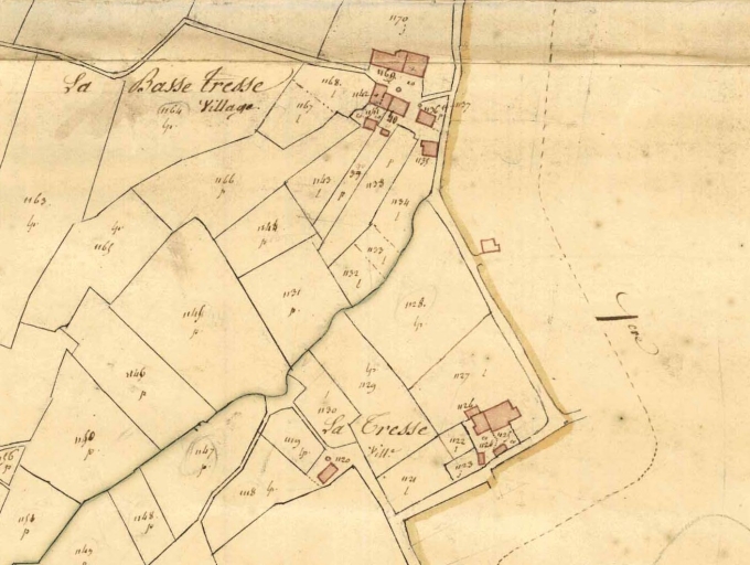 Plan géométrique parcellaire de la commune de Bais, section H3 dite du Bourg. Levée par Jules Chalette géomètre, [1827], échelle 1/2500e. (A.D. Ille-et-Vilaine : 3 P 5247).